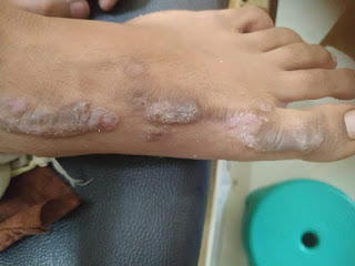 2. 15yr female child having complaint of itching B/L pedal with nodular swelling like scar since 5 month.Please suggest 🙏🙏